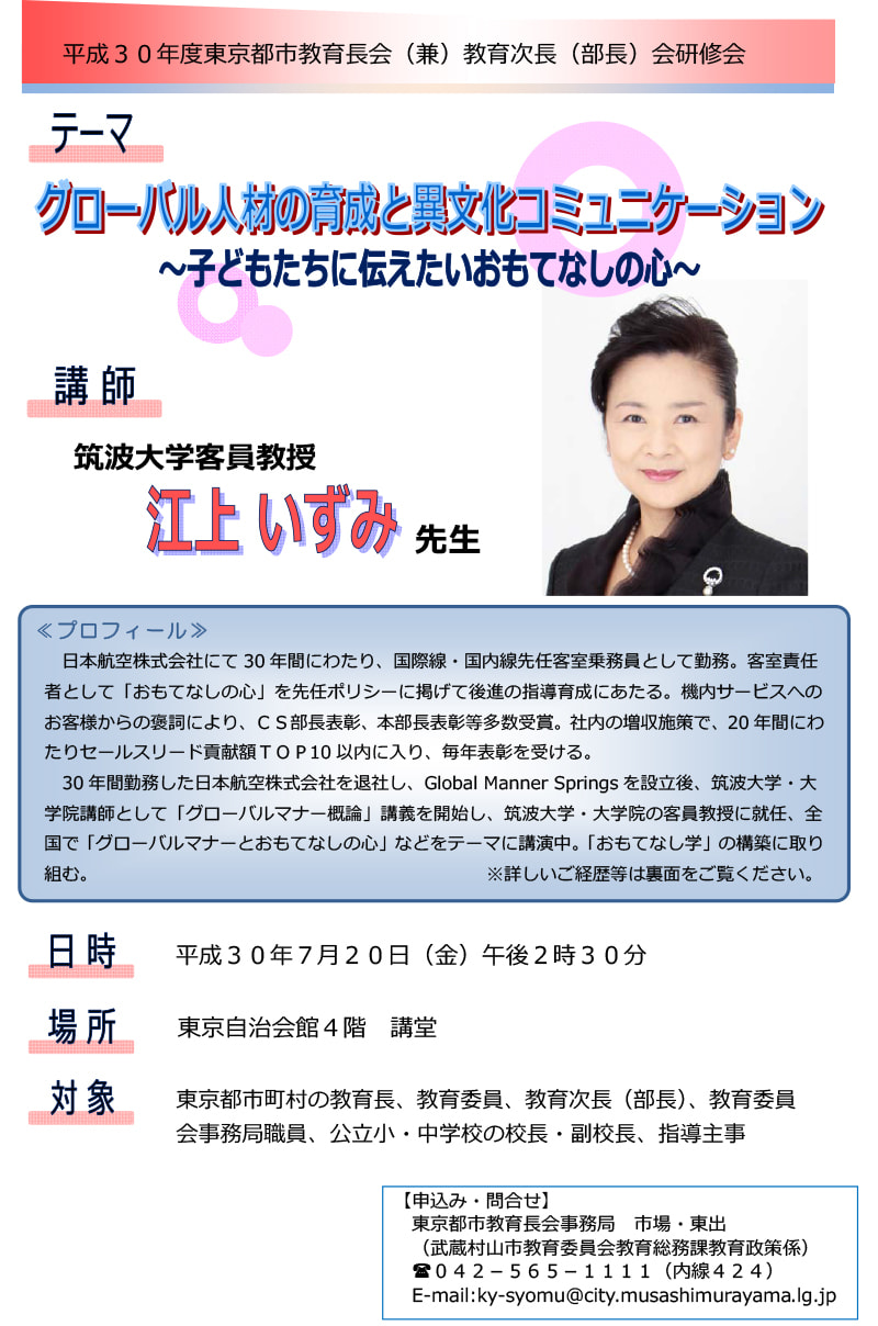 2018年7月20日、東京都内市町村の教育長、指導主事、教育委員、校長先生方に向けて、「子どもたちに伝えたいおもてなしの心」をテーマに90分の講演をしました!