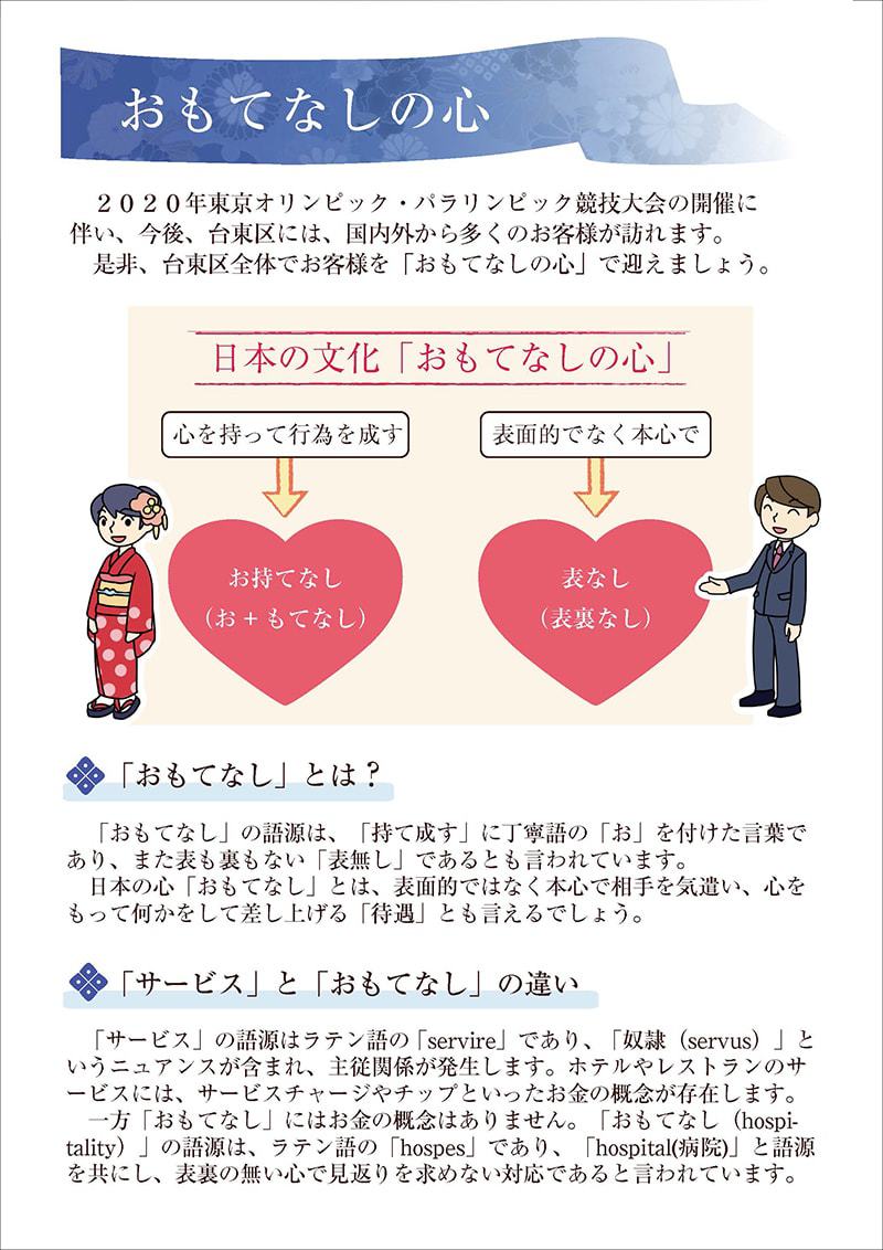 おもてなし区である台東区が2020年に向けて身に付けておきたい「おもてなしの心」や「グローバルマナー」について紹介する「おもてなし」パネル展を開催したいということで、監修をお引き受けしました。
