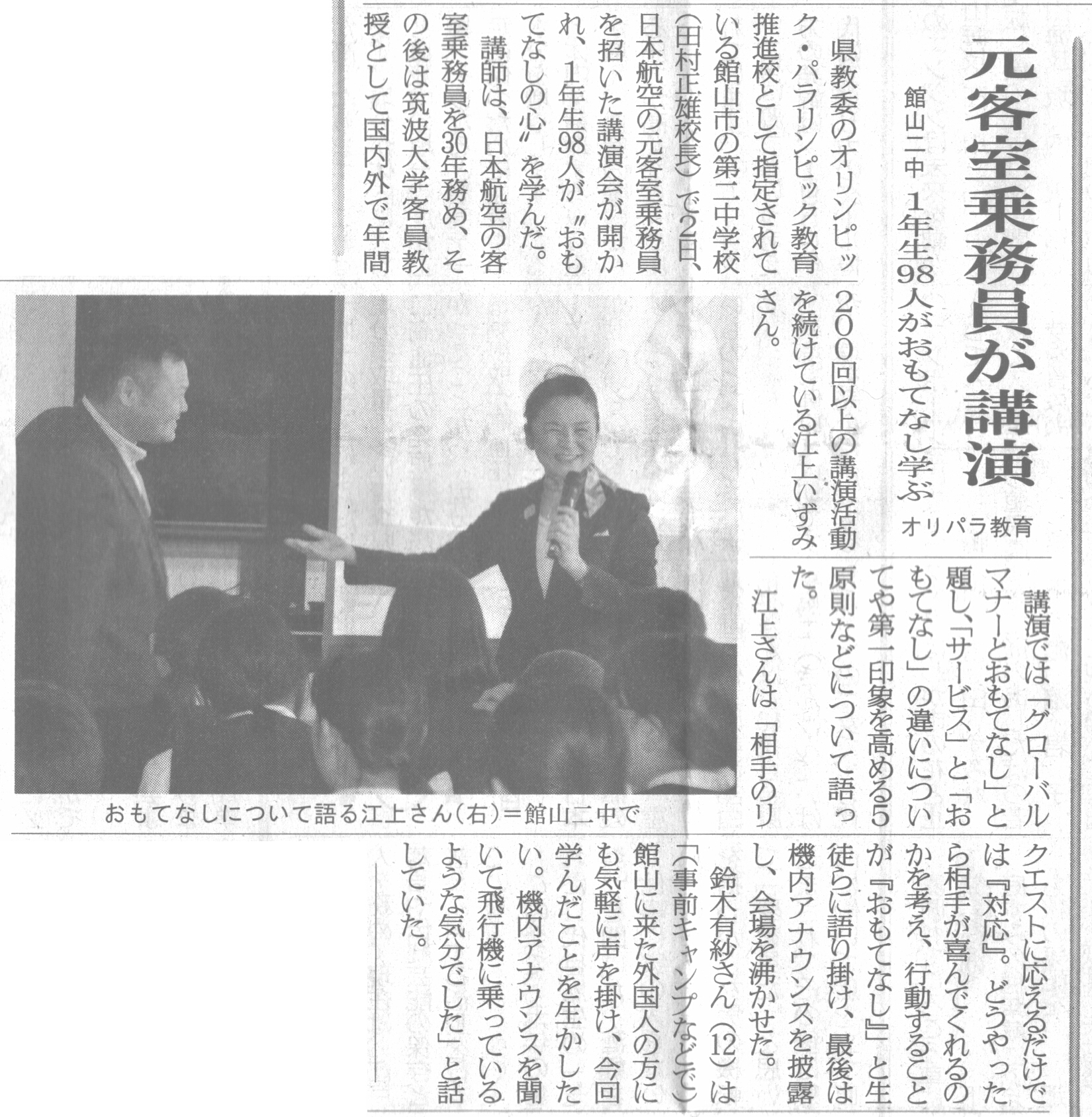 千葉県の館山市立第二中学校での講演の様子が房日新聞に掲載されました。(2018年11月6日)