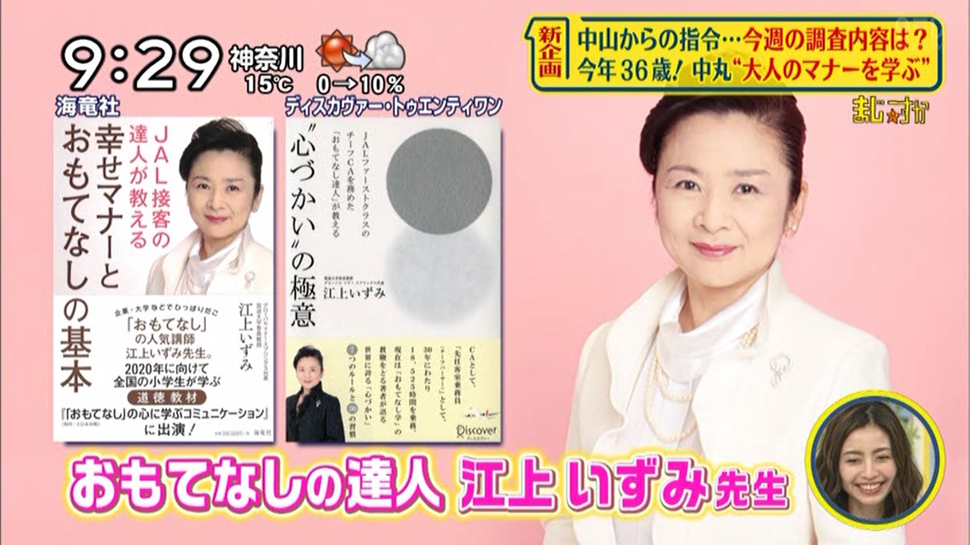 2019年2月3日(日)日本テレビ系列朝の情報番組「シューイチ!」に出演しました。「マジっすか?」の新企画「中丸、マナーの鬼になる!」のコーナーで「上司の家を訪ねる際のマナー10」をお伝えしました。