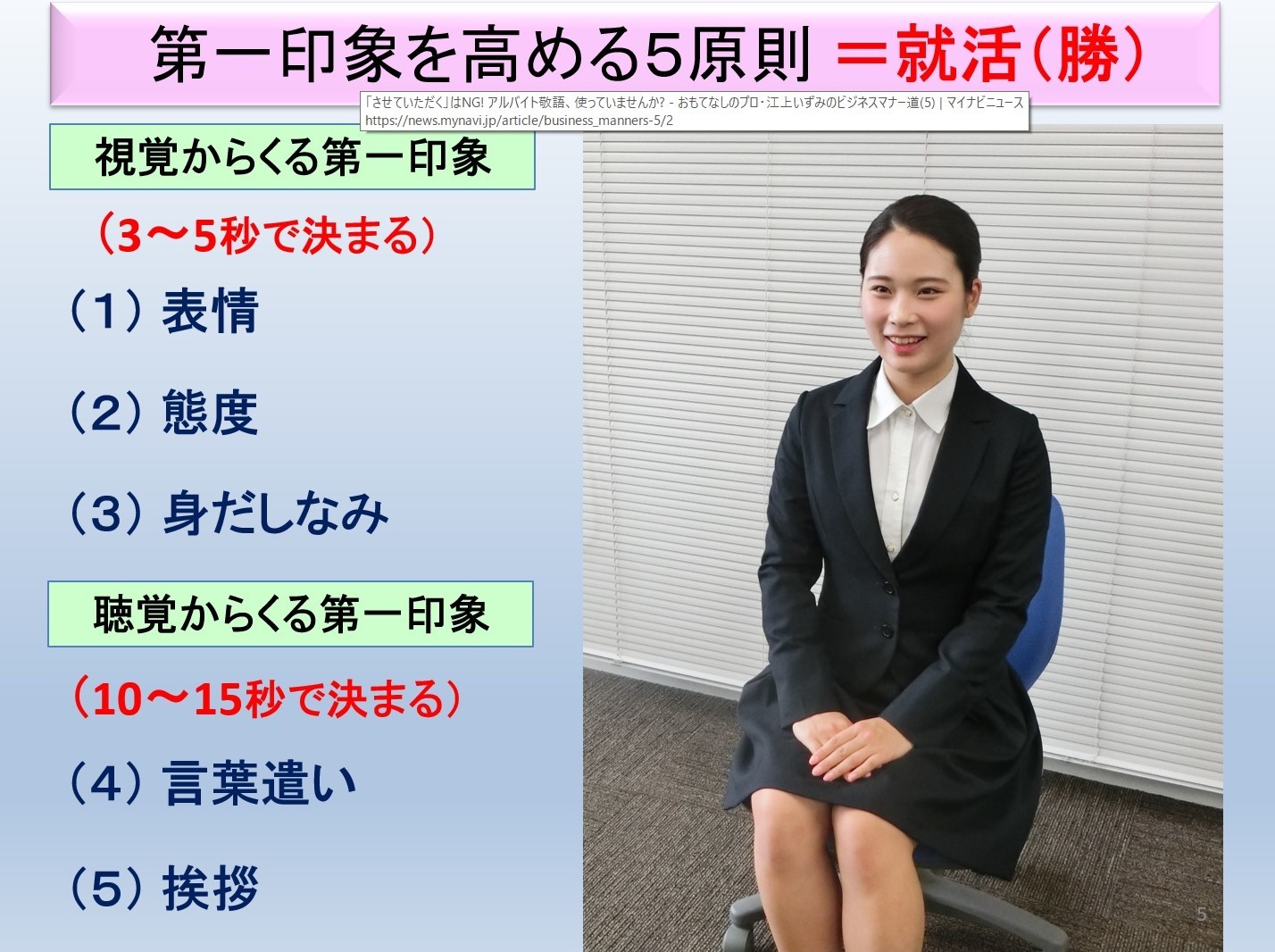 マイナビニュースで「おもてなしのプロ・江上いずみのビジネスマナー道」連載が始まりました。第1回のテーマは「スーツの選び方と着こなしのマナー」(2019.3.29配信)
