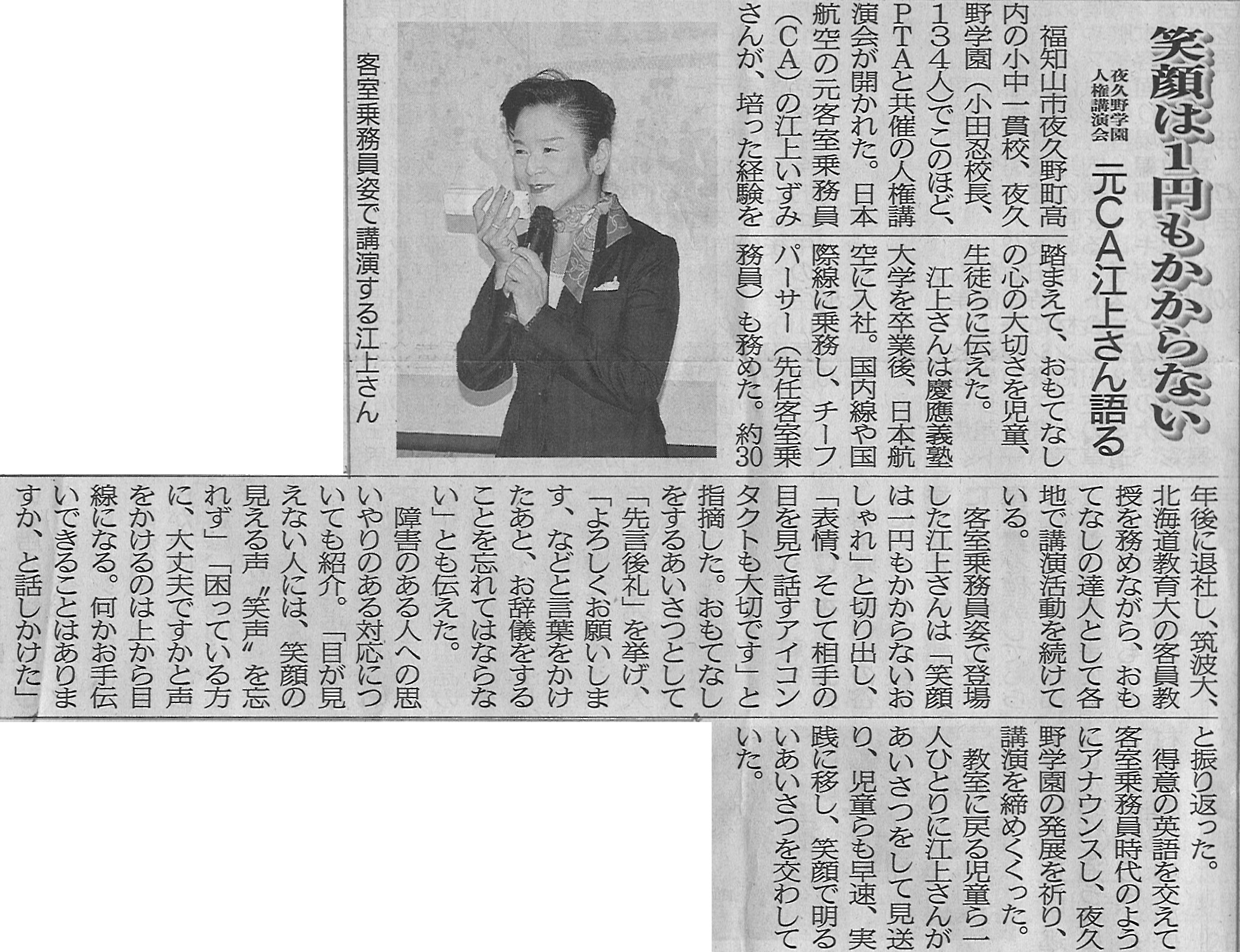 2019/10/11 目黒日本大学中学・高等学校での講演の様子が日刊スポーツWebで紹介されました。スクリーンに映し出された写真は「前髪・横の髪によって同じ笑顔でも印象が変わる」ことを説いたもの。行事などでおもてなしをする時や面接時の「身だしなみ」の重要性についてお話ししているところです。