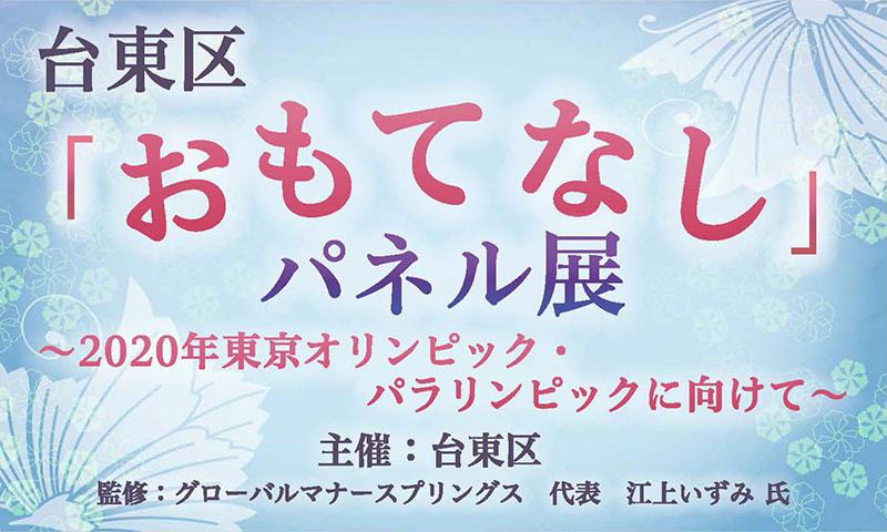 おもてなし区である台東区が2020年に向けて身に付けておきたい「おもてなしの心」や「グローバルマナー」について紹介する「おもてなし」パネル展を開催したいということで、監修をお引き受けしました。