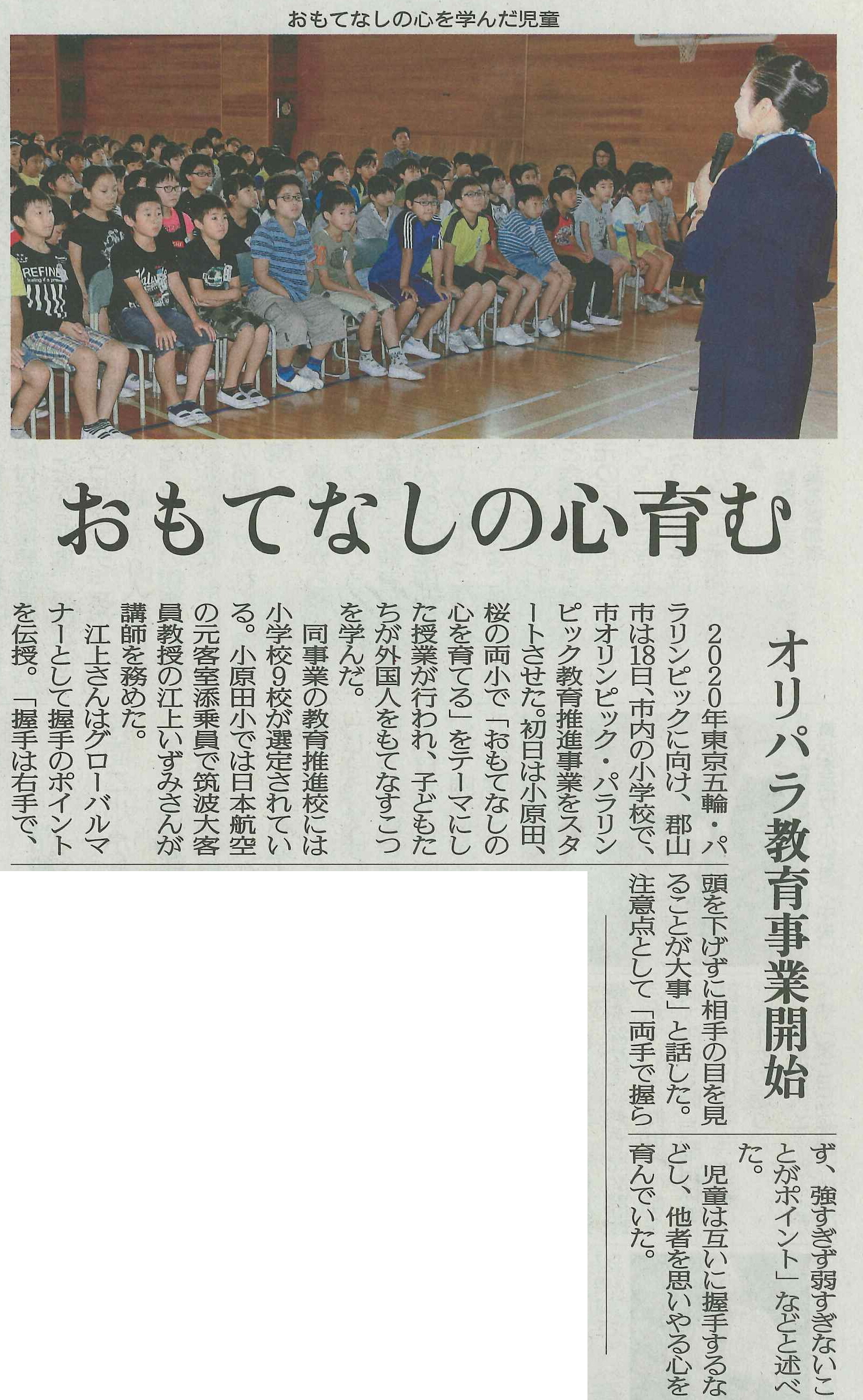 9月18日(木)郡山市立小原田小学校での講演の様子が郡山民友新聞に掲載されました。