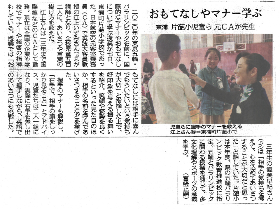 愛知県のオリンピック・パラリンピック推進校での講演は初めてなので、中日新聞にも掲載されました。(2018年11月8日)