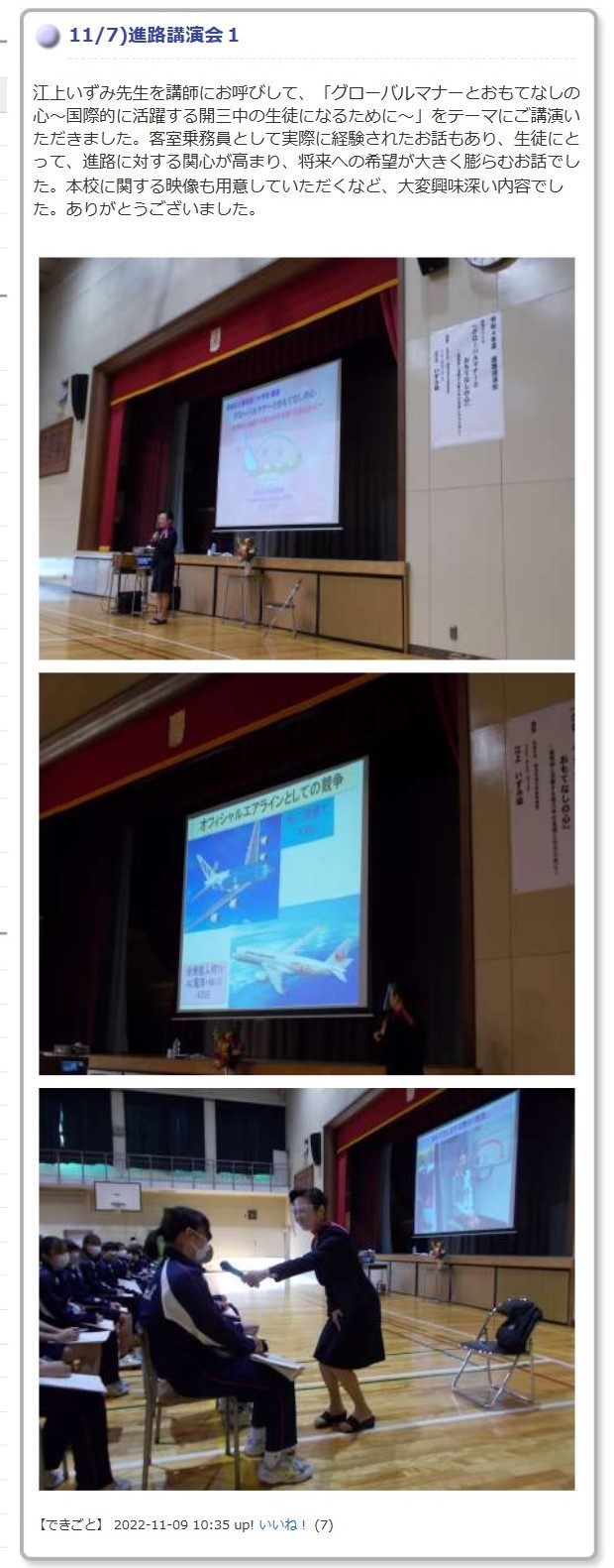 2022年11月7日 練馬区立開進第三中学校全学年向け講演