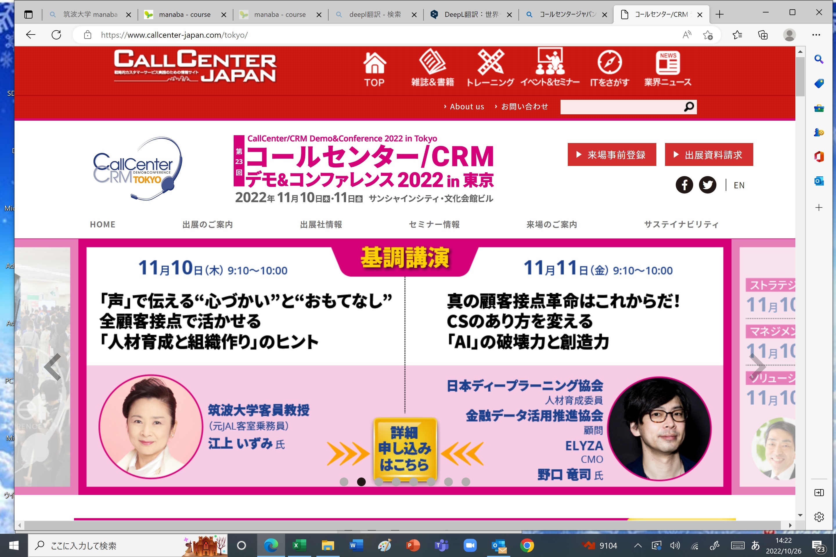 毎年池袋サンシャイン文化会館で開催される「コールセンター/CRM デモ&コンファレンス」2022in東京の基調講演で登壇しました。毎年1万人以上のコールセンターおよびカスタマーサービス部門関係者(CS部門、アウトソーサー、ベンダーなど)が訪れるイベントで多くの方に聴講していただきました。