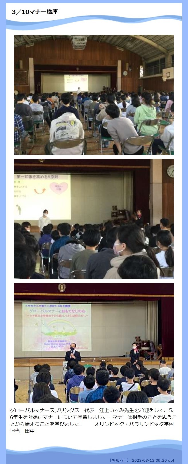 2023年3月10日 小平市立小平三小学校5・6年生向け講演