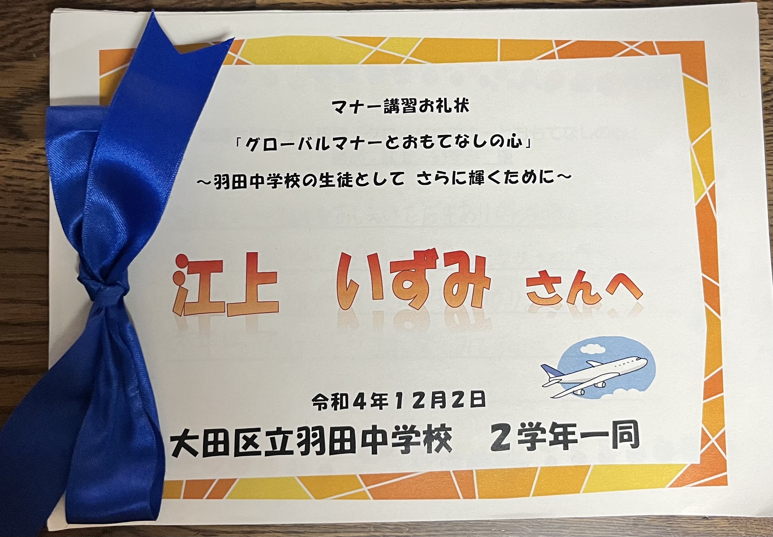 2022年12月2日 大田区立羽田中学校2年生向け講演