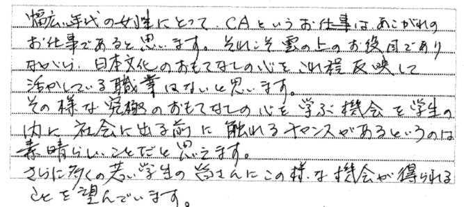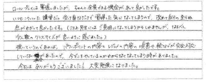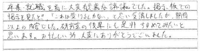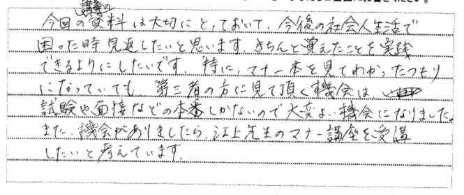 | 0000年0月00日 | 研修・セミナーを受けた大学生のアンケートより |