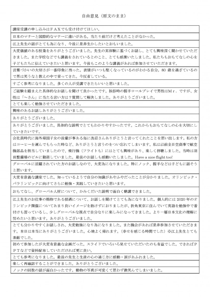 | 2014年12月18日 | K大学での講演「グローバルマナーとおもてなしの心~就活に向けて~」を聴講した学生からの声 |