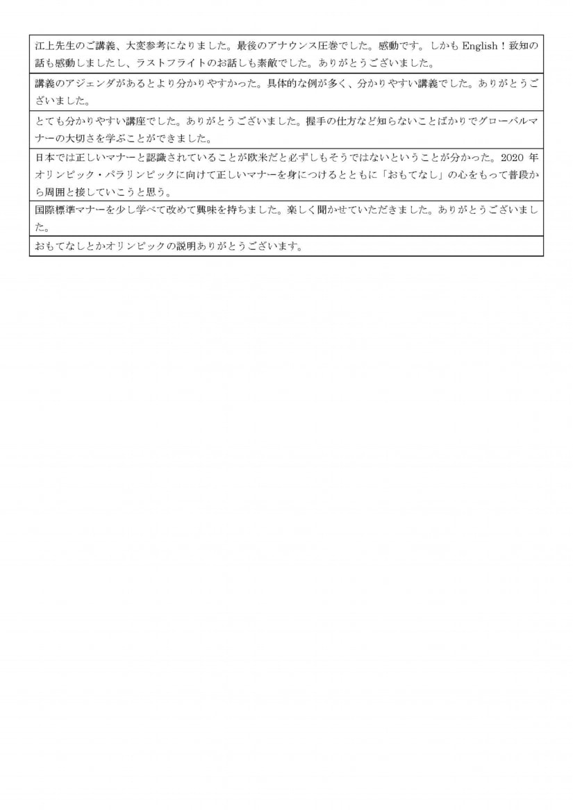| 2014年2月27日 | T大学で行った特別セミナー「グローバルマナー」を聴講した学生の感想 |